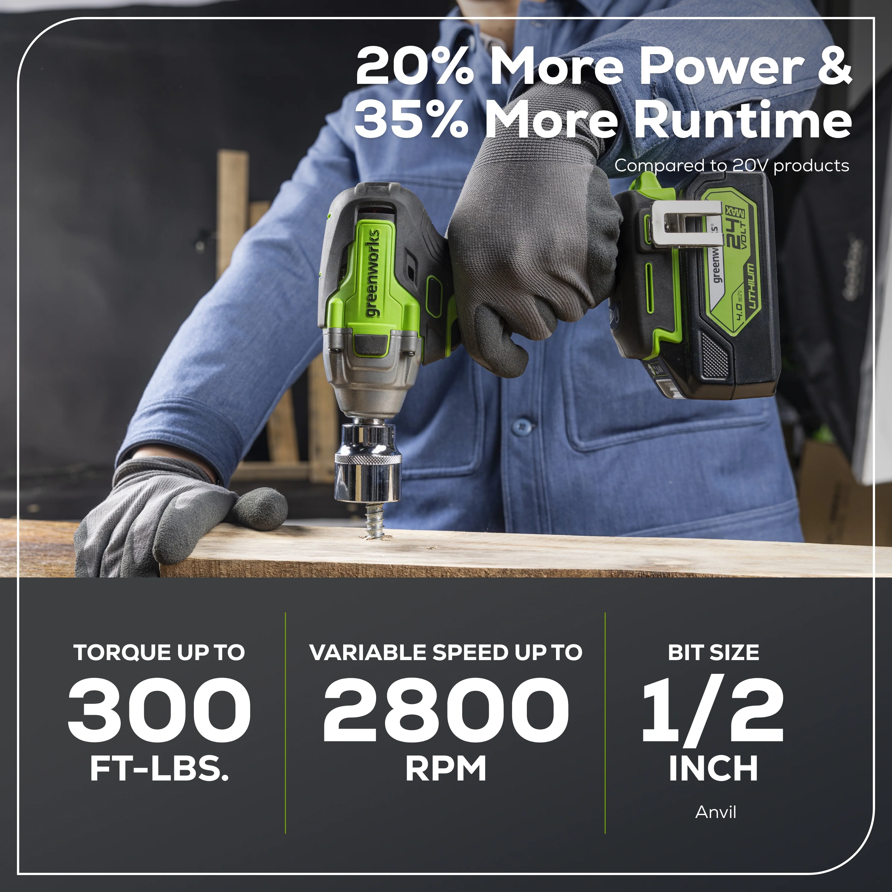 24V Brushless 1/2" Impact Wrench, 4.0Ah Battery and Charger Included