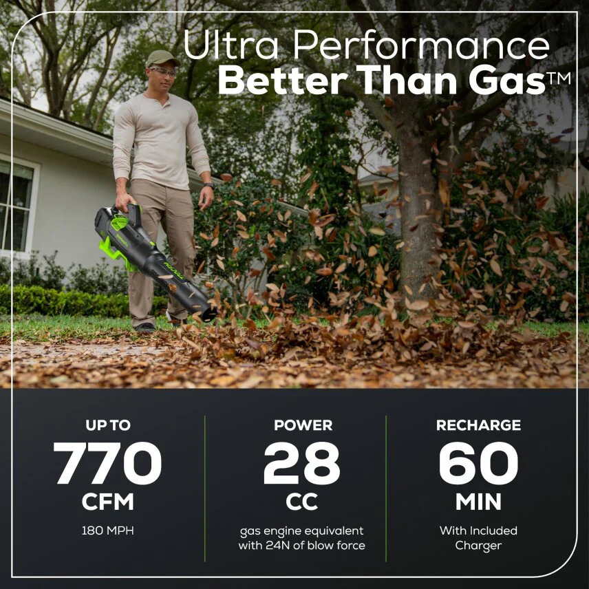 80V 770 CFM 180 MPH Leaf Blower, 4.0Ah Battery and Charger Included